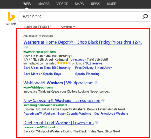廣告可同時展示在必應(yīng)和雅虎搜索